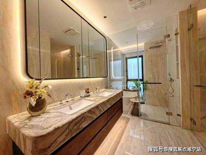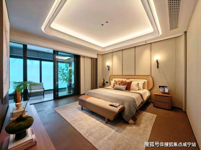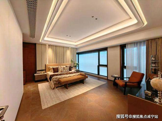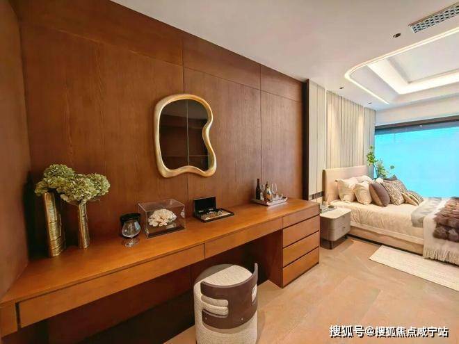豪华主卧套房设计(户型为全套房设计),该户型位于南塔高区,大横厅设计,明亮、通透,南向俯瞰风貌别墅区,视野开阔。客餐厅南北分布,动静合理,超大家政空间满足高端居家生活及收纳需求。