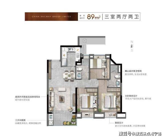 值得一提的是北卧的无连廊设计—— 打破传统连廊对采光和隐私的遮挡,无论作为儿童房、书房还是老人房,都能拥有独立舒适的体验。再加上户型方正、动线紧凑,厨房 U 型操作台、客餐厅相对独立又完美相融、主卧套房设计及南向奢阔阳台等细节,让这款户型在改善市场中脱颖而出。