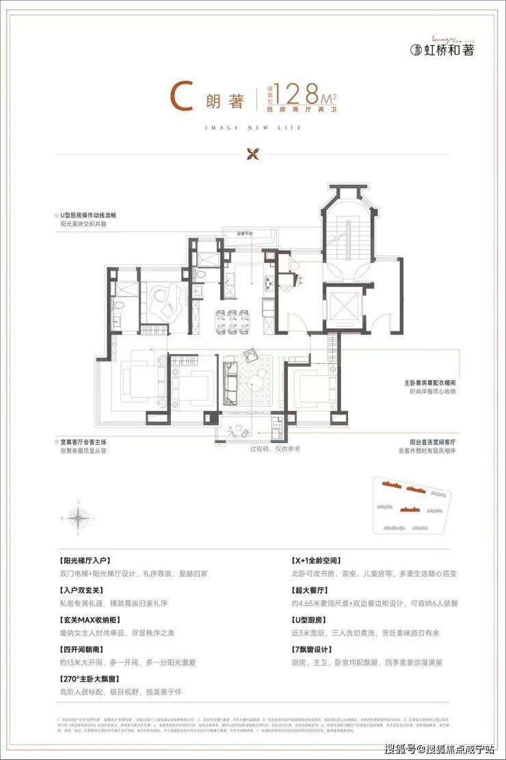 过去很长一段时间,由于土地端7090政策限制,新房产品绝大部分以百平米左右刚需产品为主,而保利虹桥和著此次将推出建面约128㎡稀缺舒适四房,本身就是一次难得的改善机遇,更何况该户型设计非常亮眼,四开间朝南设计,尽可能将更多阳光引入室内,主卧270度飘窗+南北通透大套房设计,同级别户型中十分罕见,充分满足舒适度和身份感。