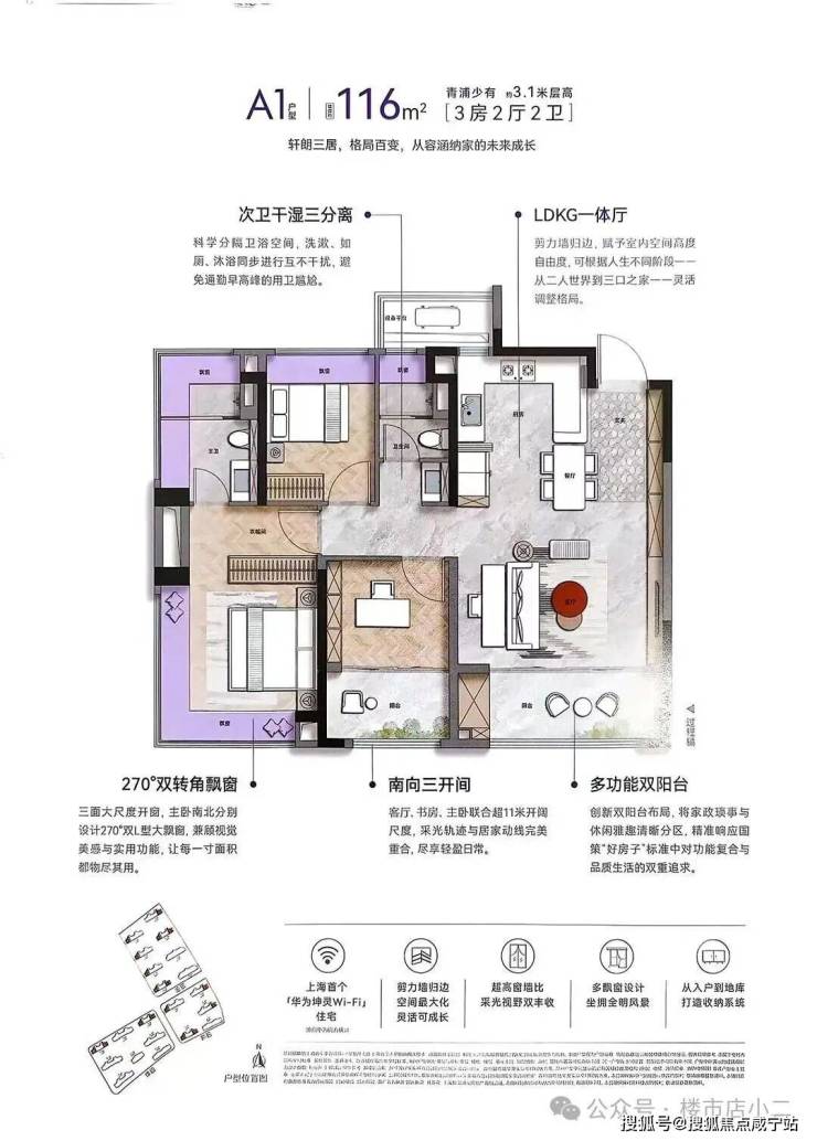 建面约116m²户型的预估总价与周边二手次新99m²房源挂牌总价相近,但室内空间完全不是一个量级!