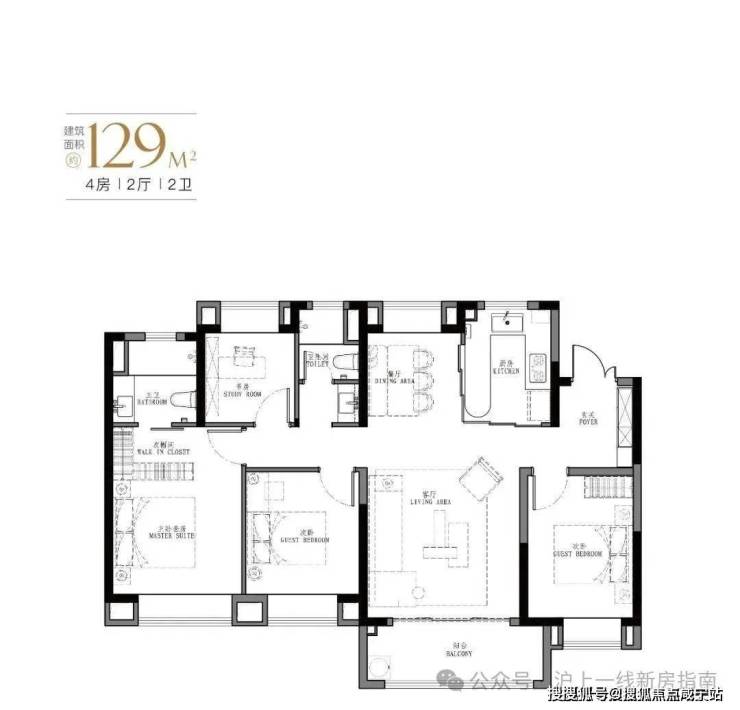 产品:103㎡、107㎡的三房两厅两卫及123㎡、129㎡的四房两厅两卫