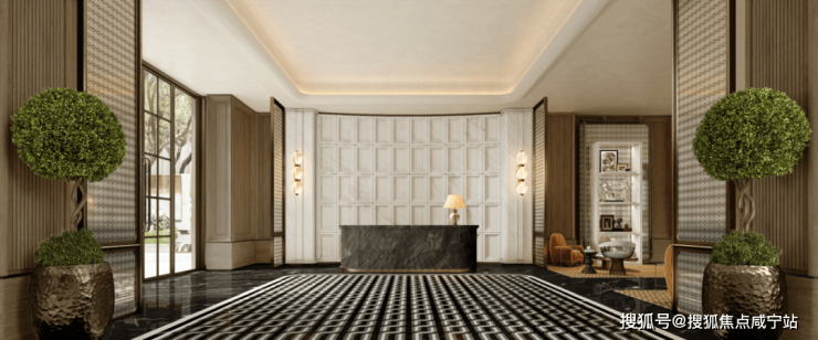 比如,挑高约 6米的入户大堂、水系景观与艺术家共创作品交相辉映