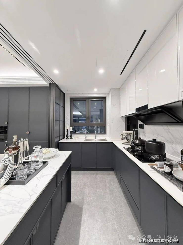 比如,厨房配了珍珠白吊柜、三组抽屉式拉篮合理搭配,调料架收纳、大容量踢脚抽、清洁用品收纳区,米面粮油、碗碟刀叉都可完美隐身。