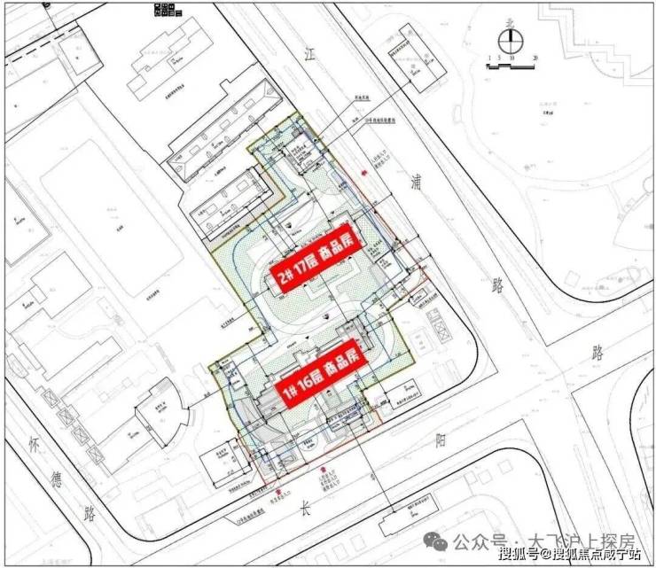 人行出入口、车行出入口、消防出入口,设置在南侧长阳路上,并设置1个临时上下客停车位;西侧江浦路设置人行出入口兼顾消防出入口