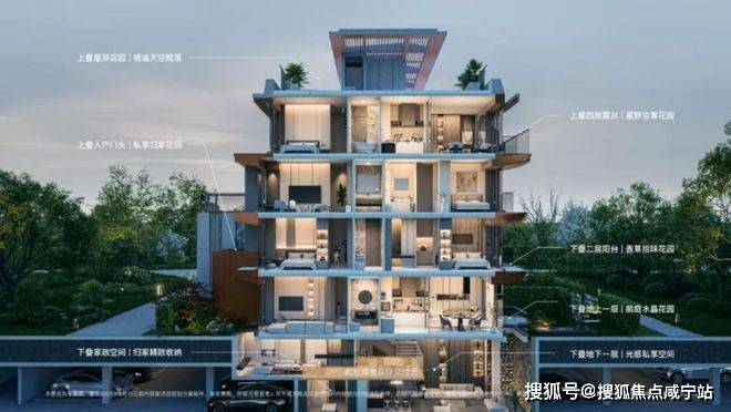 在这个立体空间体系中,摒弃了叠加别墅中资源更加集中在下叠、而忽略上叠居住尺度的传统设计,而是做到了史诗级的创新,实现真正的平权——