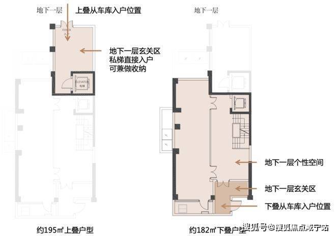 每套叠墅均有地库直接归家动线。无论是上叠还是下叠,都在地下一层有独立专属门厅,且面积不小。