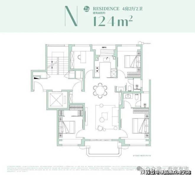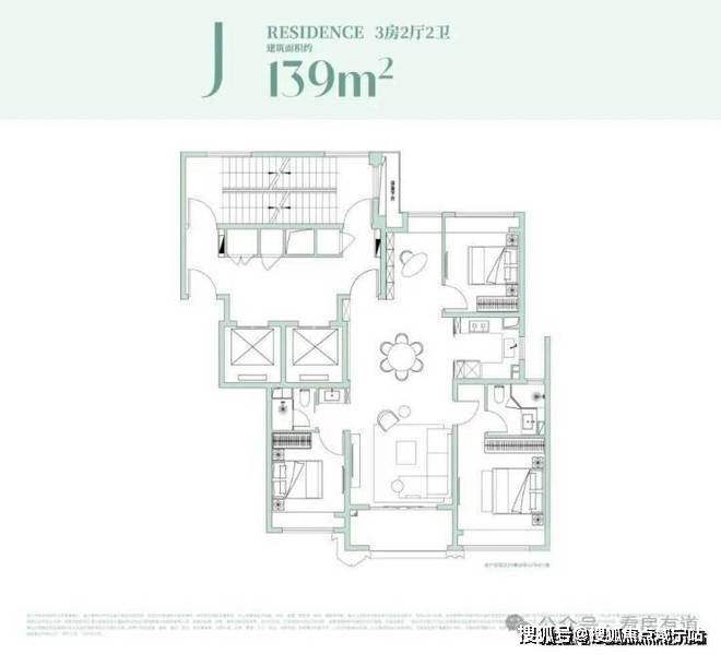 约153㎡户型设计:极致观景,西瞰江景,东瞰园景!4房功能齐备!