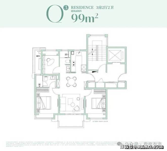 其中建面约99㎡3房在15#,双核心优势加持: