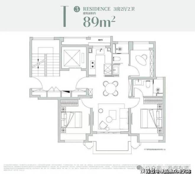 约99㎡户型设计:经典飞机户型格局!独立观景阳台!