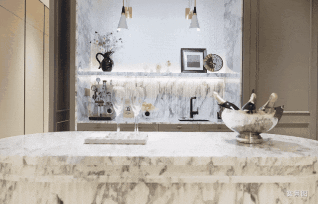 约600平户型 中厨橱柜选用意大利奢华家居品牌Boffi精选系列,全球首款模块化无把手厨房系统;