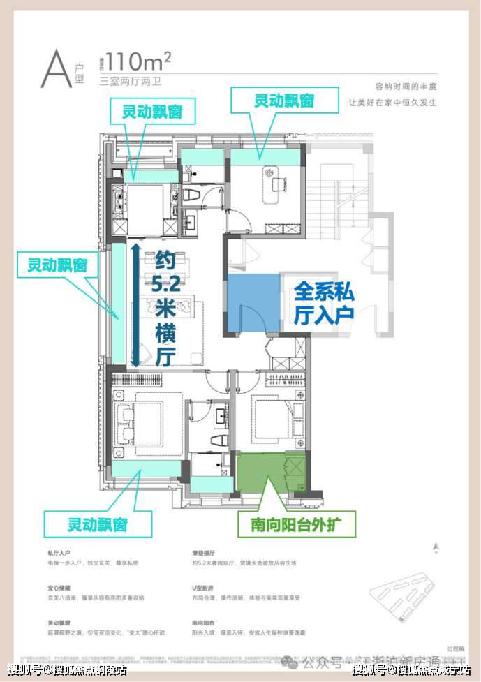 所有户型都是私厅入户设计,每户均享有约5㎡的独立电梯厅,这在板块内实数少见。