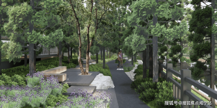 香樟为口,水杉为墙,调出慢生活纯粹的意境,朗拾花语致力于打造家楼下的水岸生活社区。社区内拥有入口仪式庭院、静心庭院、水榭林间、童玩乐园、滨水庭院、微风草坪、Mini植物园”等核心景观模块。