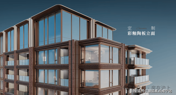建筑整体采用经典三段式比例,融合中西建筑语汇,以现代极简风格为内核,通过自然咖与鎏金色的视觉碰撞,既延续传统,又彰显时尚。更值得一提的是,璞元将传承千年的东方陶艺进行当代转译,结合邬达克建筑线条,使陶制腰线不仅呼应上海向上的城市精神,也成为镶嵌于立面的文化符号。