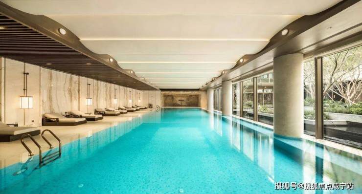眼尖的购房者会注意到,泳池的屋顶采用波浪形设计。一旁的休息区更配备有躺椅。在暖色调灯光营造的氛围下,似乎下一刻就能听到浪花拍打在景色沙滩的声音。