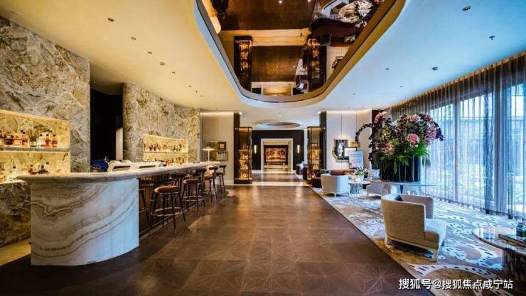 这里是业主未来的第二客厅,吧台采用纹理独一无二的奢石打造而成。接待来访的三五好友相当有身份!