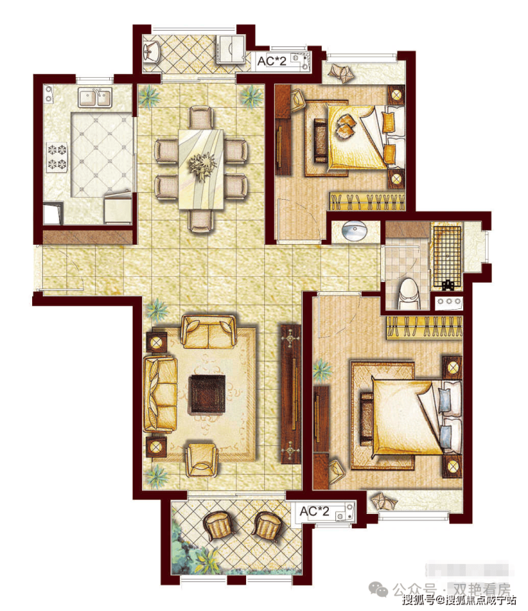 高层户型:88㎡2房2厅1卫
