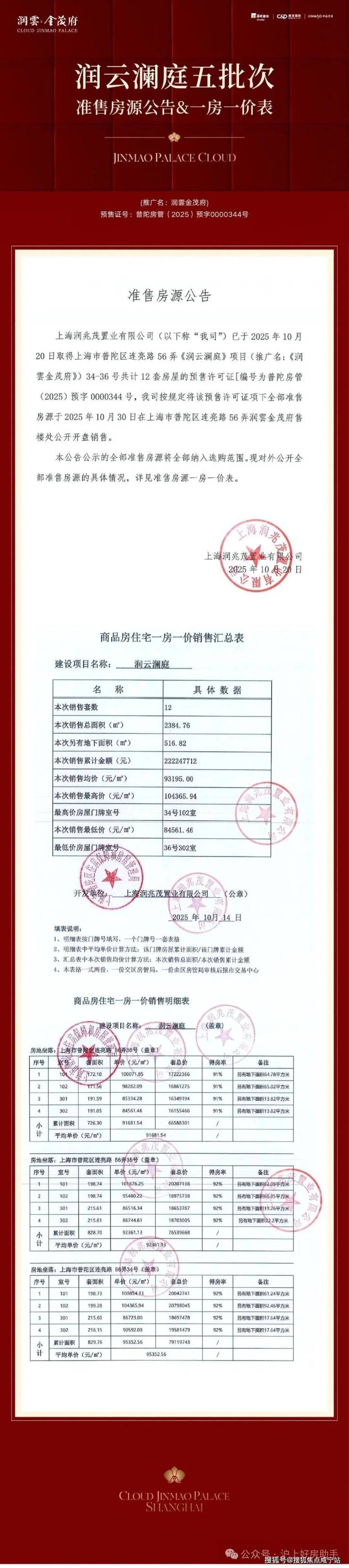 最新消息:上海中环现象级红盘「润雲金茂府」五批次正式获批取证,仅剩下的少许房源正在认购中,分布在8号楼,建面约170-217㎡,单价约9.31万/㎡,总价约1530万起。