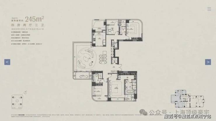 建面约245㎡,总价3700-4800万,折算单价15.1-19.6万元/㎡