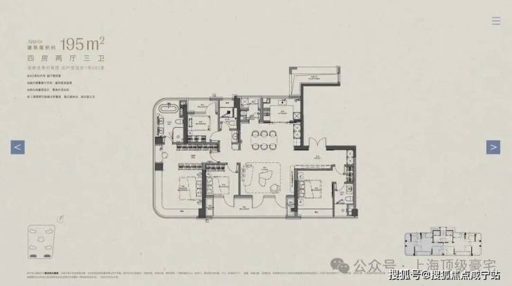 建面约195㎡,总价2700-3400万,折算单价约13.8-17.5万元/㎡