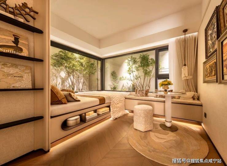保利誉滨江北卧的L型无柱大飘窗就更是实用性拉爆。既可以用来赏景休憩,也可以砸掉做书桌、化妆台等。