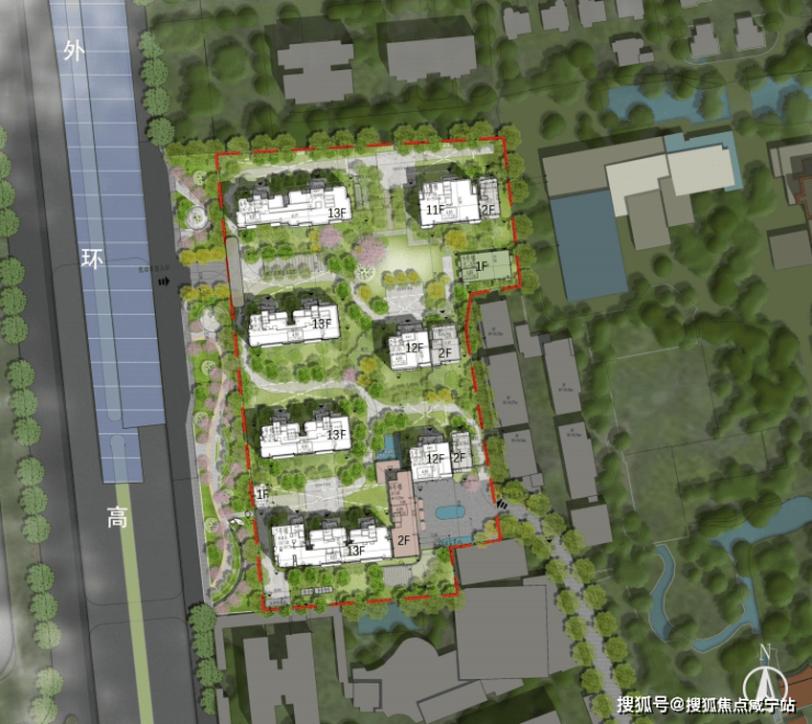 根据设计方案显示,项目拟建设7栋11-13层小高层住宅,规划292户,用地面积17986.5㎡,容积率2.0,地上总建筑面积39600㎡,其中,商品住宅总建筑面积33921.01㎡。