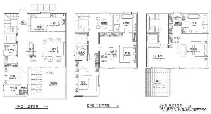 项目规划层高,1楼为3.6米,2、3楼均为3.2米。小区整体容积率为1.3。