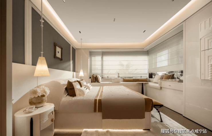 南向卧室的设计更是点睛之笔,通过可开可合的移门,与客厅上演空间魔法,实现卧室、开放式书房、客厅延伸区的三重空间形态。
