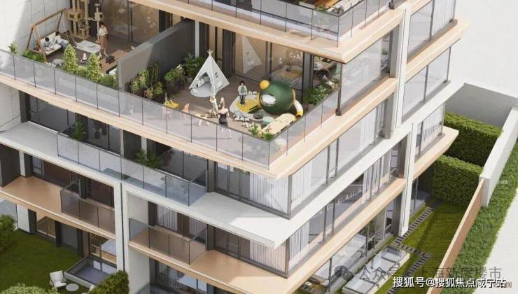 创新打造层层露台 + 垂直⽣态体系,将庭院托举至云端,让每一位居者都能拥享有天有地的院落体验,实现上下叠庭院平权。