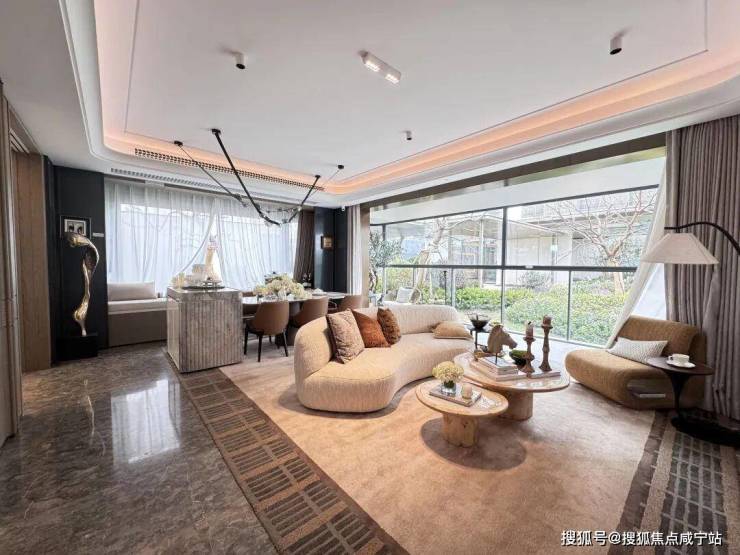 这已超越传统客厅的概念,它是一个融合了观景、聚会、休闲功能的“全景社交平台”,室内的通透感与空间张力足以让人惊叹。