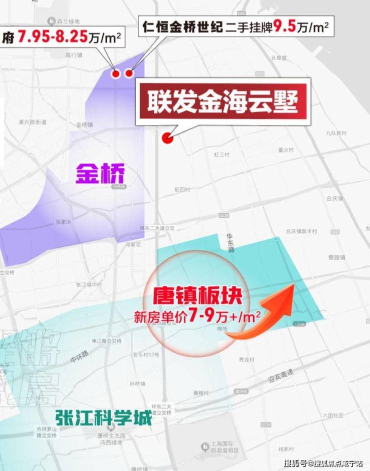 比如另一朵“金花”金鼎天地的新房价格从7.5万/㎡一路抬升到8.25万/㎡,隔壁的二手房仁恒金桥世纪二手挂牌甚至能看到9.5-10万/㎡;更别说张江科学城了,新扩容的唐镇新房价格也从7万+/㎡一路飙高,如今已经能看到9万+/㎡的水平了……