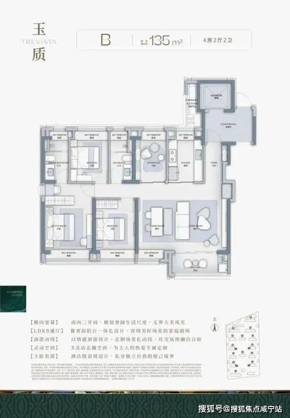 135m²的四房户型就是小户型的plus版,利用横厅的布局带来通透性,所以乍一看非常敞亮,但不够方正的结果就是,大开间配短进深,灵活空间和收纳空间有一定挤压