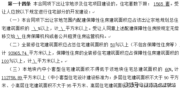 根据项目建设需求:地块规划住宅下限1565套,地块要求一半全装修,中小户型比例为60%以上,装修集采标准为2500元/平。