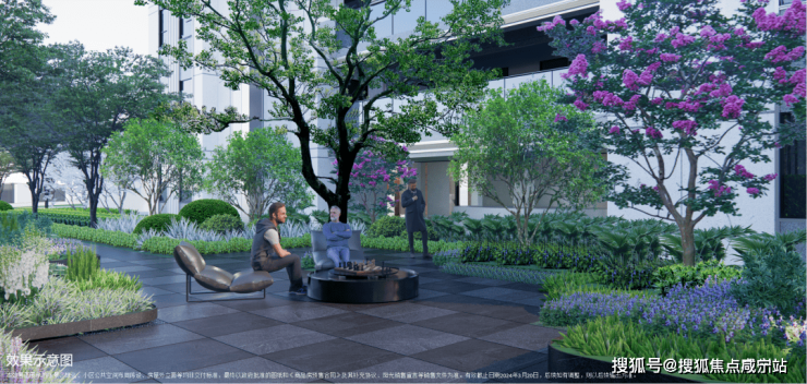 由香樟、迷迭香、夜来香等构筑的芳草花厅,缤纷色彩与清新芬芳相结合,为业主提供野餐、放风筝等场景活动;