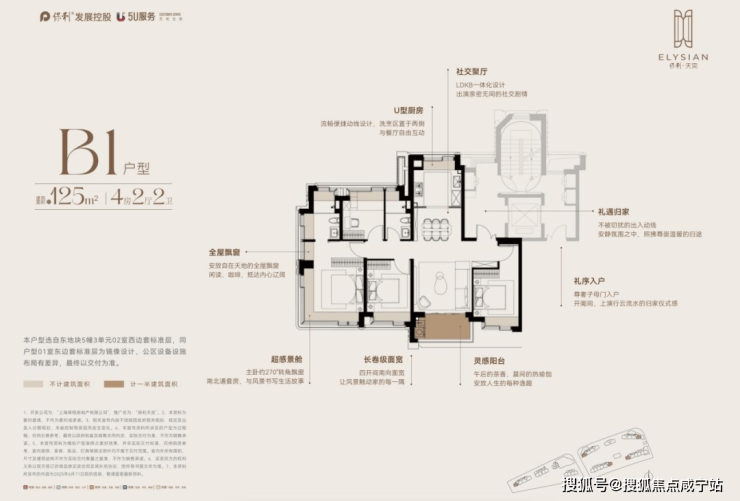 建面约125m²,约1000万起即可上车更舒适的边套四房!