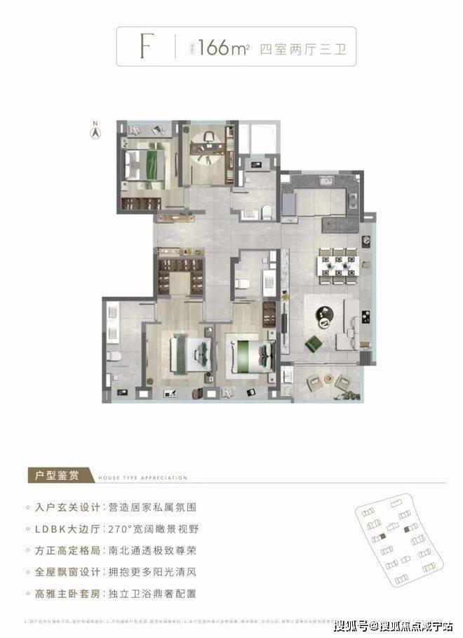 :边套设计,5.6米宽幕竖厅,全明格局,三面采光,入户独立收纳区。