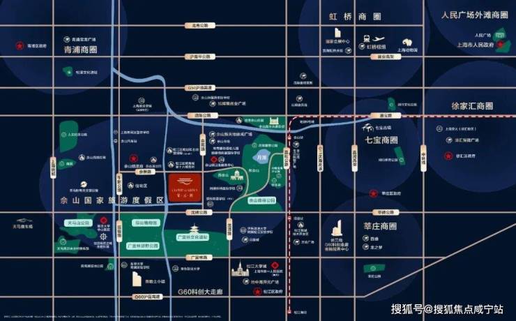 佘山森林公园、辰山植物园、月湖雕塑公园、广富林文化遗址、广富林郊野公园、天马山公园、欢乐谷、世茂精灵之城主题乐园;