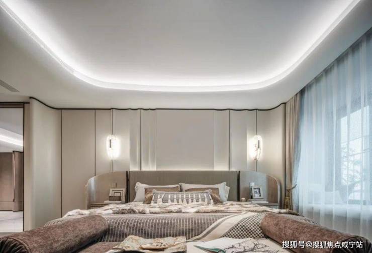 主卧大套房设计带超大主卫和衣帽间,面积约50㎡,尺度感与市面上近300㎡的顶豪拉平。
