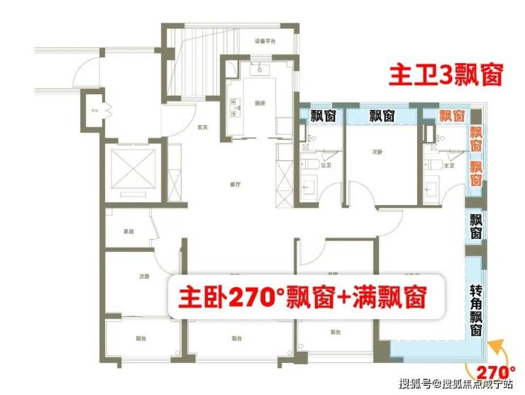 第四大亮点,全屋满飘窗设计,带来全景舱般的开阔视野!