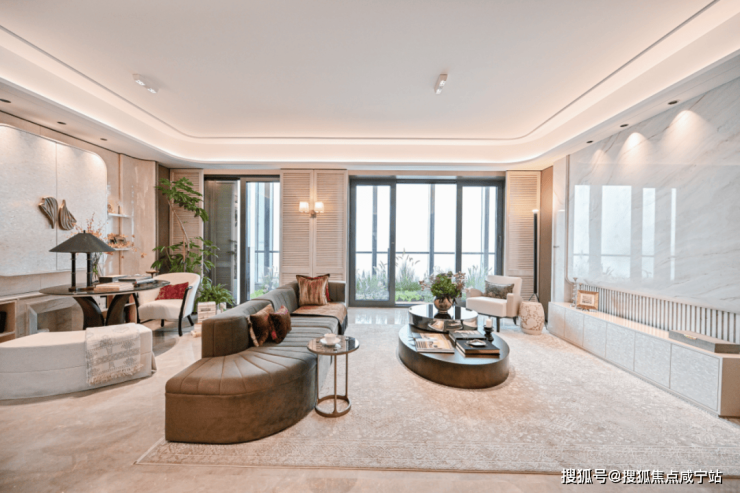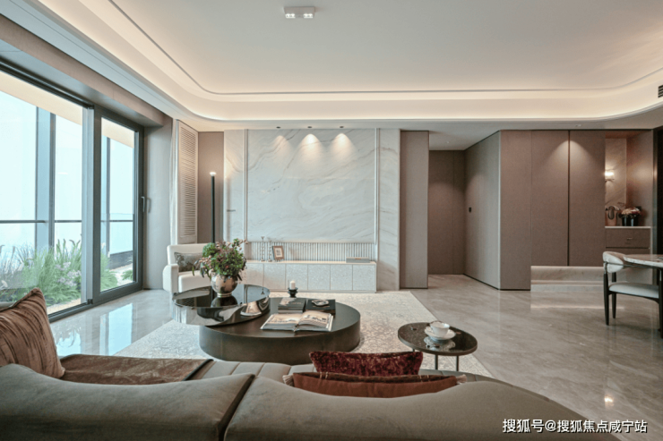 门口门牌号背景采用芬迪白奢石,客厅沙发背景墙采用影木木饰面和皮革造型,电视背景墙则用云纹白金沙石材;此外室内还大面积运用昂贵的影木木饰面,从入门瞬间就彰显高端格调。中海环宇玖章售楼处电话📞400-8800-703如有问题欢迎来电咨询,来电即可享受买房优惠!