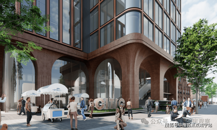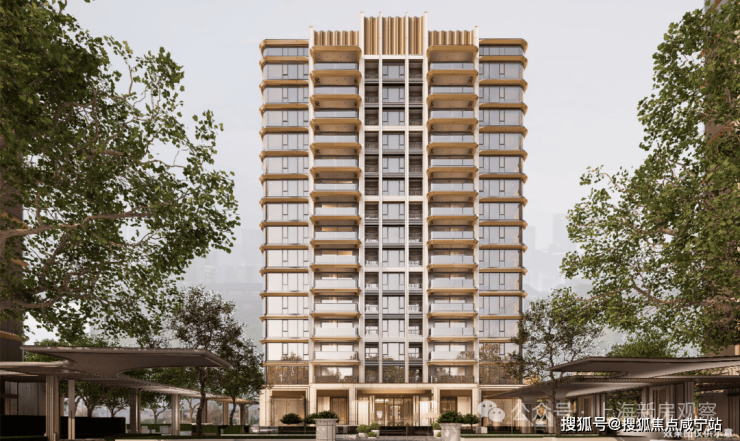 项目外立面窗墙比很高,据说用了全幅玻璃幕墙,颜值还是很可的,大面积采用暖色调,点缀香槟金配色,实际可能是想营造阳光下熠熠生辉的感觉。