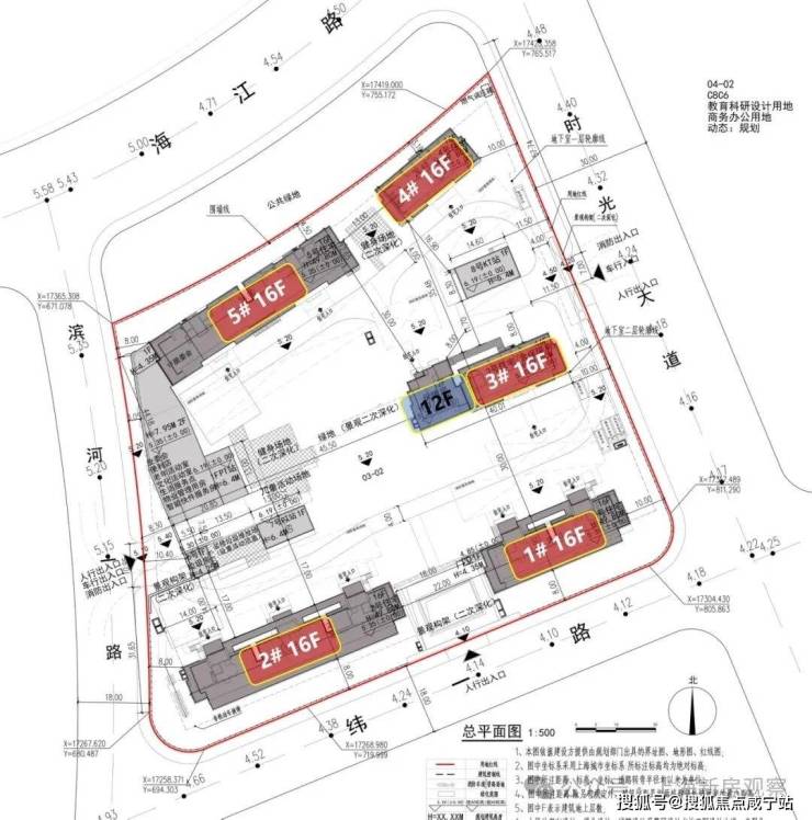 项目由5栋16F高层组成,共计311套房源,车位配比1:1.18,栋距30米(最大栋距目测超过60米)。项目南侧纬一路南面,同样规划了三类住宅用地,而项目北面则规划了公众绿地。西面也为公共绿地,东面则是商办及教育科研用地,不过这些规划均提示为:动态规划!