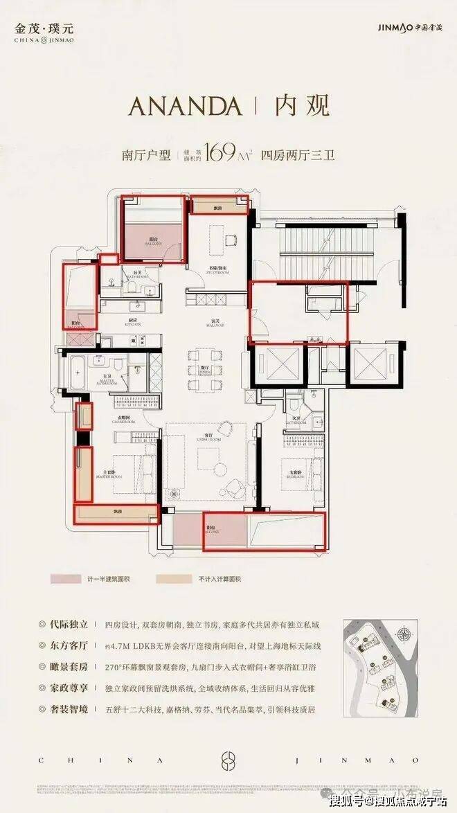大胆采用四排楼布局,以保证户户通风采光,✅✅金茂璞元售楼处电话:400 - 880 - 0703✅✅类一梯一户无连廊设计,将入户私密性做到极致