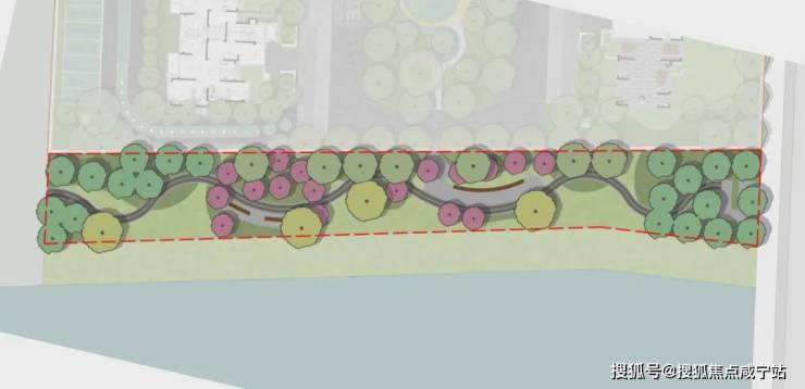 想象一下,丛生的乌桕、冬青等,构筑滨水步道,消弭了社区与外部的边界感,慢行步道上,花树夹道,于林间观水,岸边桃红柳绿,塑造了春季限定的观景平台,如此景观,将成为未来的打卡地。
