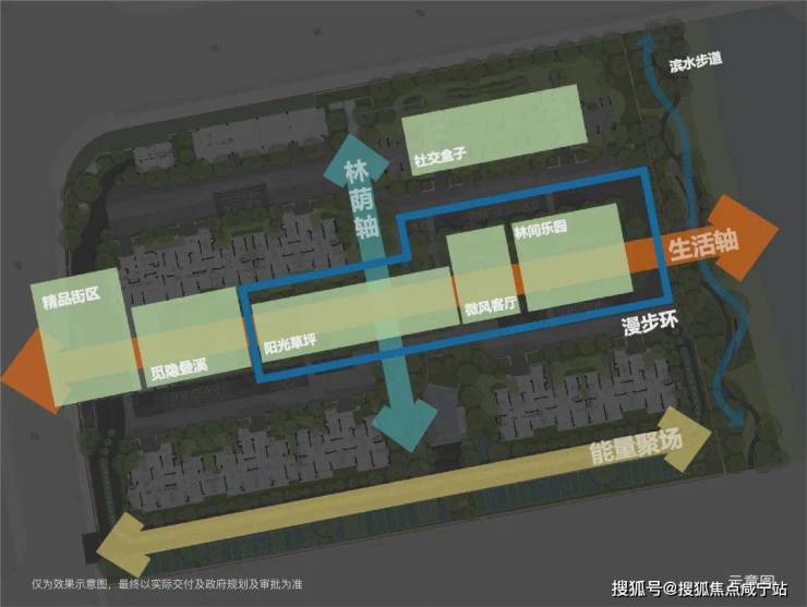两轴一环,即林荫双轴以及漫步环,在提升整个小区归家仪式感的同时,赋予业主丰富的活动空间。