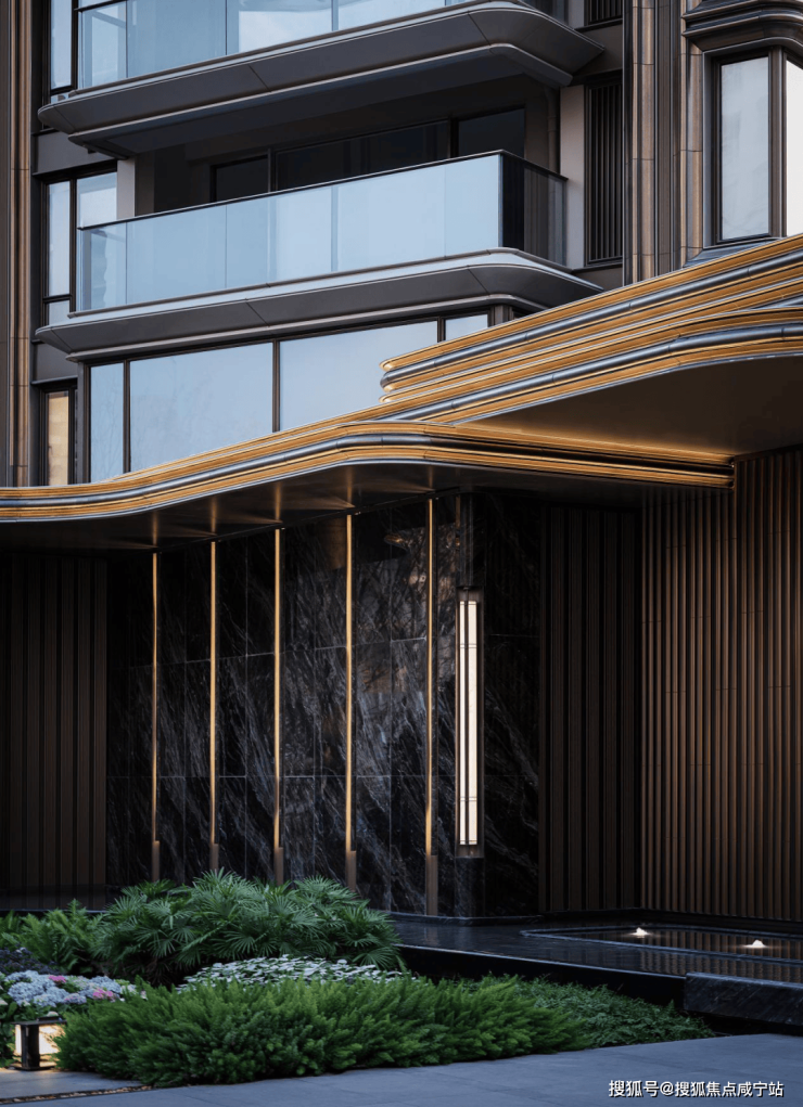 360°全向立面设计:东西南北四个面皆为正面,类一梯一户无连廊。经典三段式布局,大面积采用铝板+陶+玻璃,以中西合璧的国际东方美学引领时代潮流