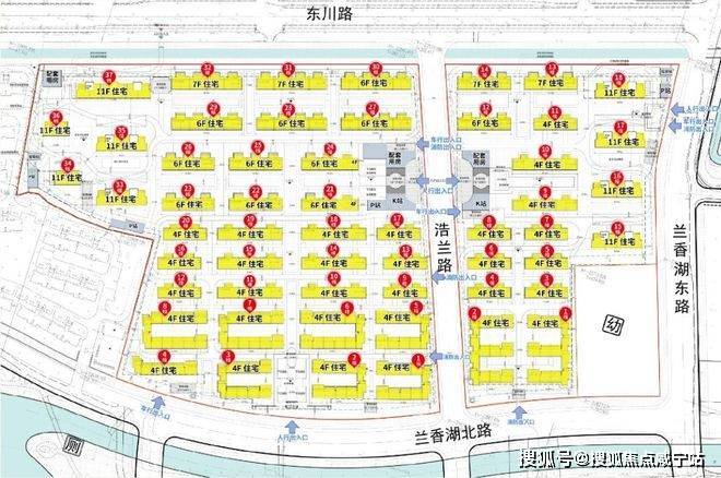 象屿·天誉蘭香03-04地块:东至兰香湖东路,南至兰香湖北路,西至浩兰路,北至东川路,土地用途普通商品房,容积率1.01;由4幢11F高层住宅、14幢4-7F多层住宅以及若干社区配套用房组成,共计规划约342套可售住宅;
