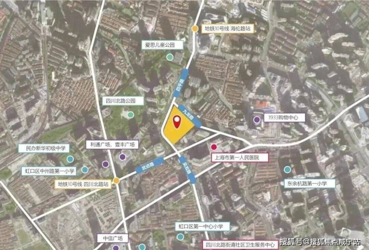 地块属于虹口内环内的嘉兴社区,就在第一人民医院北侧,南侧约200米就是北外滩,北侧即为瑞虹新城,项目直线距10号线四川北路站约400米,是今年虹口区非常重要的一个新房供应。