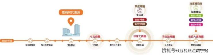 招商时代潮派位于9号线之上:3站七宝、6站漕河泾、9站徐家汇,之后还有打浦桥、马当路、小南门、世纪大道、金桥等一系列大产业区和商业中心,不仅输送着上海东西向最密集的高净值客群,更让项目实现畅达全城的的通勤优势。此外,这条轨交汇聚了上海众多高端商业,包括七宝的万科广场、徐家汇的港汇恒隆、新天地的凯德晶萃广场以及世纪大道的陆家嘴中心和世纪汇广场。