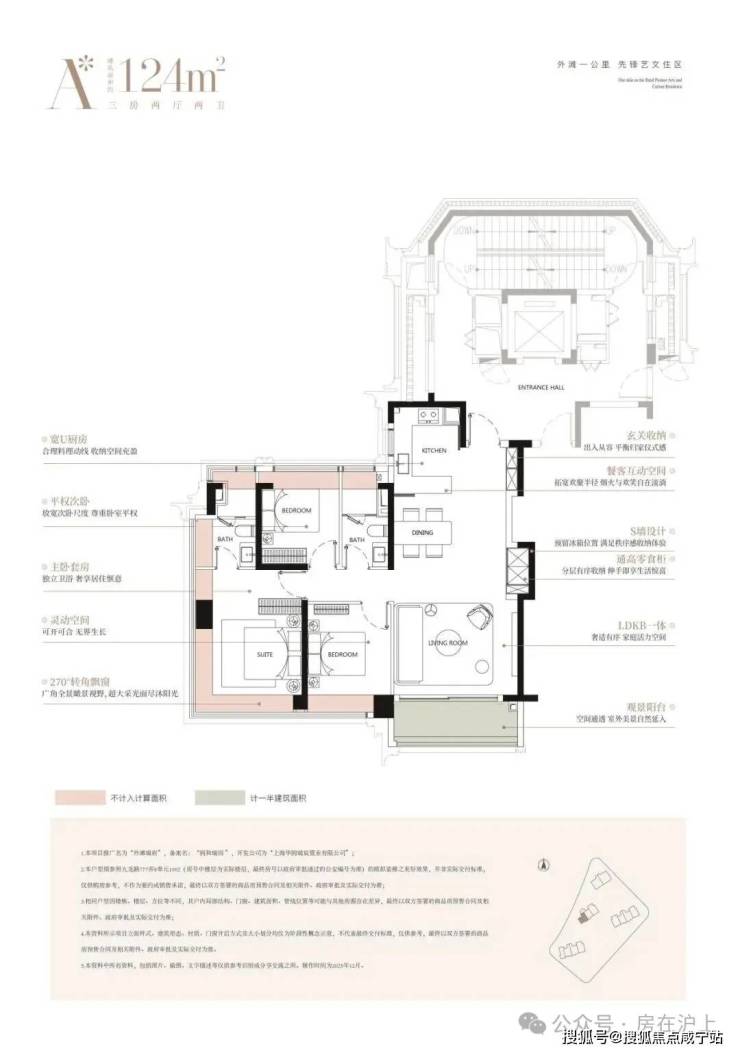 建面约124㎡经典的三房布局,高效满足主流家庭的居住需求,每一房间均设计有观景飘窗,让外滩的天际线成为日常生活的背景。创新的S墙设计与南向次卧“可开可合”的灵活隔断,在有限面积内实现了功能与美感的精妙平衡。