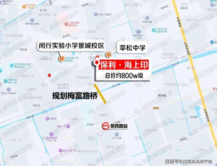 先来看看「保利海上印」项目双重利好:直通地铁的梅富路桥已完成递交投标阶段!将一年建成!隔壁次新小区明确对口闵行实验小学+莘松中学双学区。
